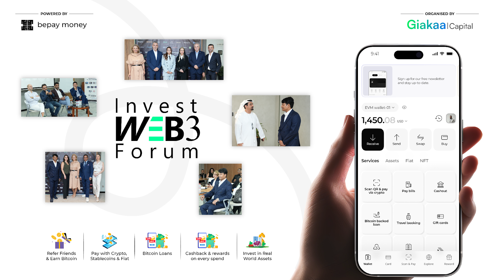 DUBAI, UAE – October 16, 2025 – The Invest Web3 Forum 2025, powered by bepay money in partnership with Giakaa Capital, concluded its 3rd and most successful edition at Dubai Knowledge Park. The forum united representatives managing over $500 billion in assets, alongside 80+ institutional investors, 100+ Web3 projects, and 2,000+ industry leaders from 50+ countries, marking a defining moment for global Web3 and fintech collaboration.